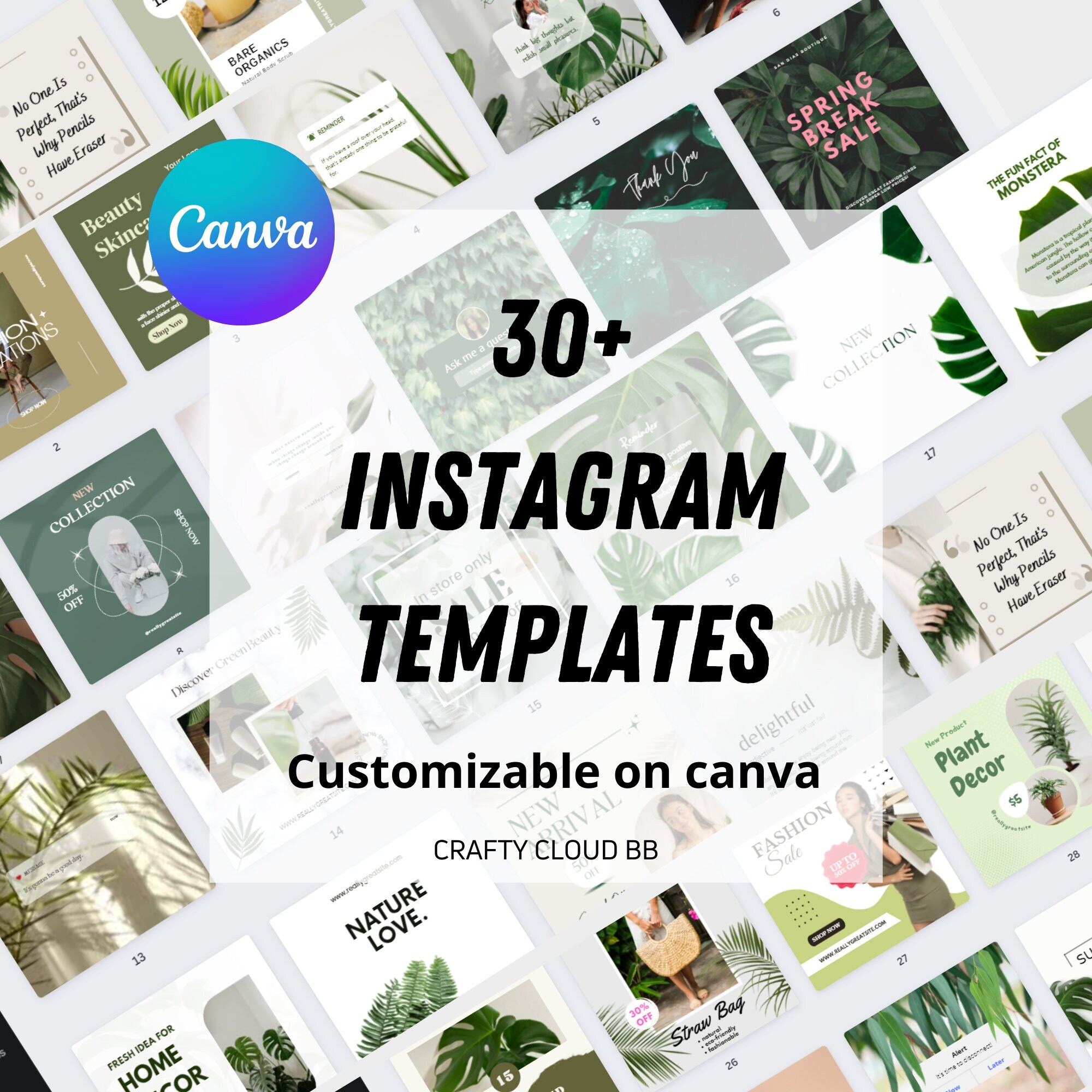 30 Greenery Instagram Canva Templates Instagram Post Etsy